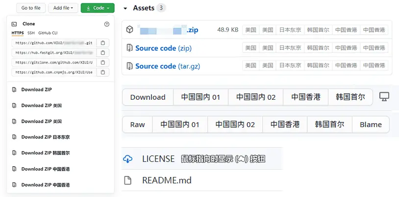 高速下载 Git Clone/SSH、Release、Raw、Code(ZIP) 等文件、项目列表单文件快捷下载 (☁),解决国内访问GitHub下载满问题,下载基本秒下载