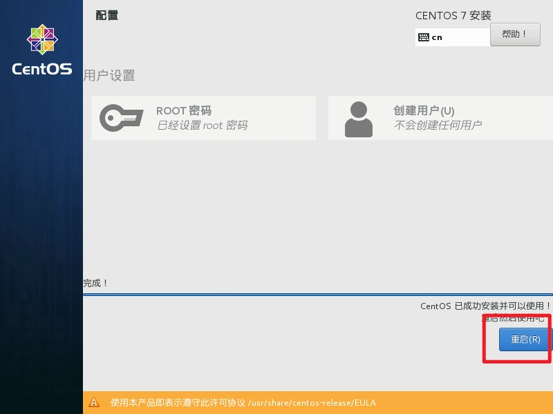 至此,我们在VMware中对CentOS的基本安装已经完成。