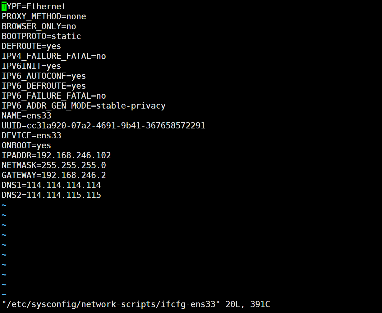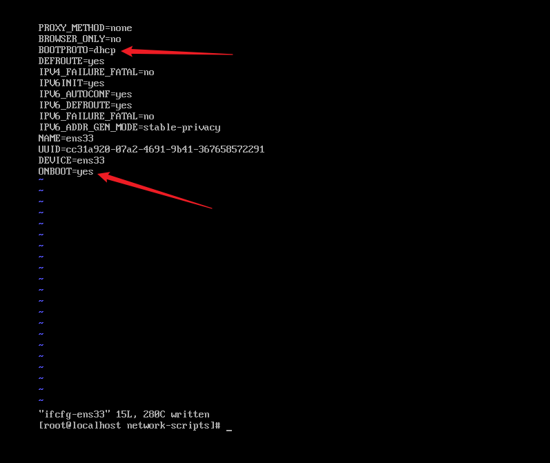 vi /etc/sysconfig/network-scripts/ifcfg-ens33