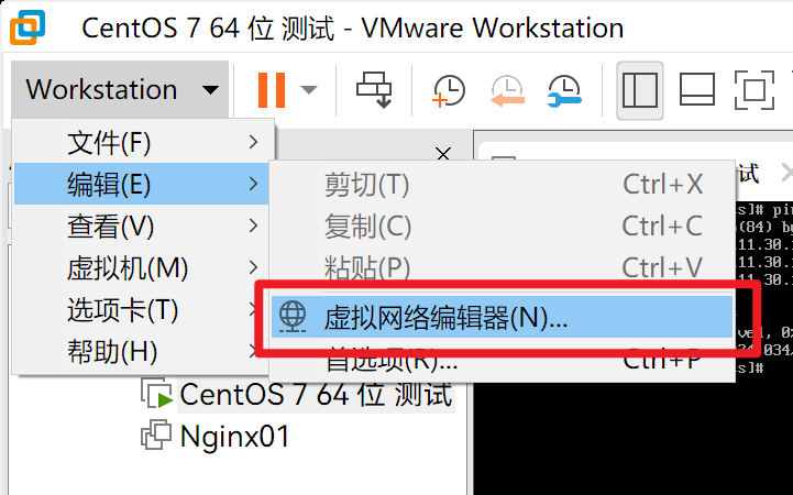 我们先查看一下网关,在虚拟机里找到虚拟网络编辑器