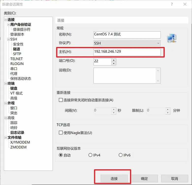 重启服务后 XShell 可能无响应,这是因为ip变了,修改XShell配置中的ip为你配置的IPADDR