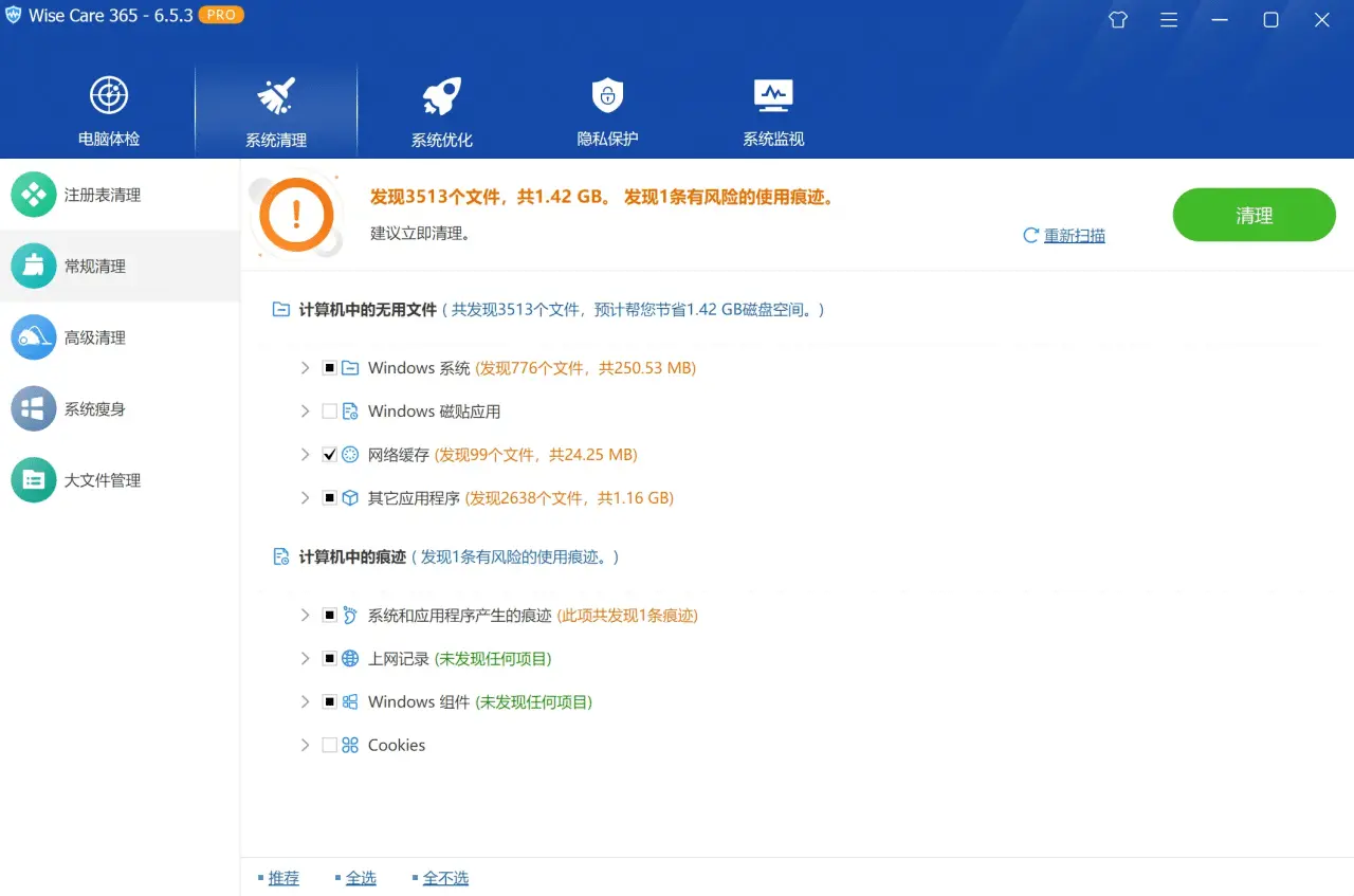 WiseCare365是一款多功能的电脑清理工具。它可以帮助用户清理无效的Windows注册表项,清除无用的文件、下载历史记录、浏览历史记录、无效快捷方式、缓存、Cookie、密码、Windows组件和具有特定扩展名的文件等等,从而提高电脑性能并释放磁盘空间。此外,WiseCare365还拥有系统优化、隐私保护和硬件监测等功能,是数十亿Windows用户提高电脑性能的首选工具之一。
