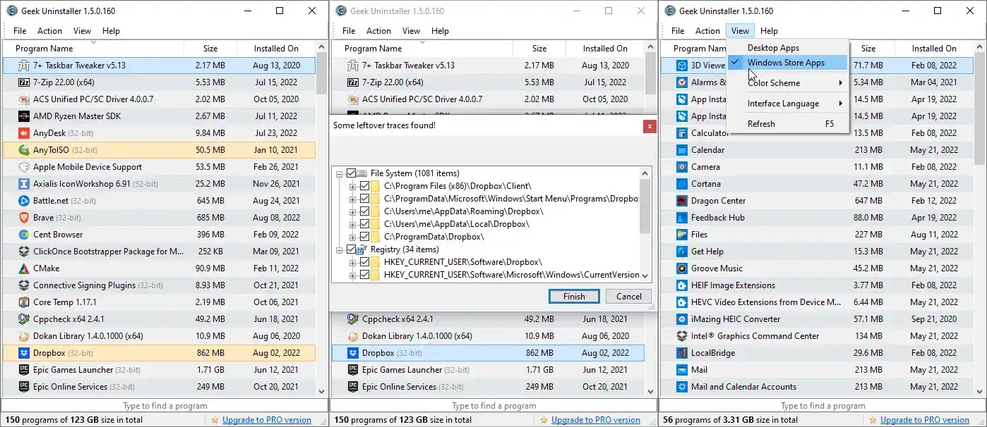 标准删除程序会在您的 PC 上留下大量剩余物。Geek卸载程序之后执行深度和快速扫描并删除所有剩余物。 - 卸载微软应用商店应用程序