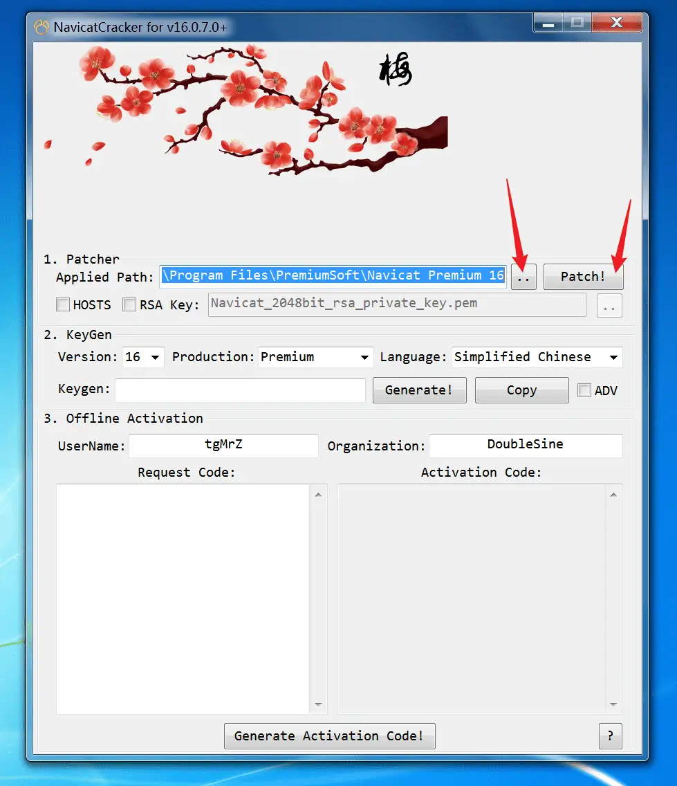运行NavicatCracker.exe,注意全程断网操作