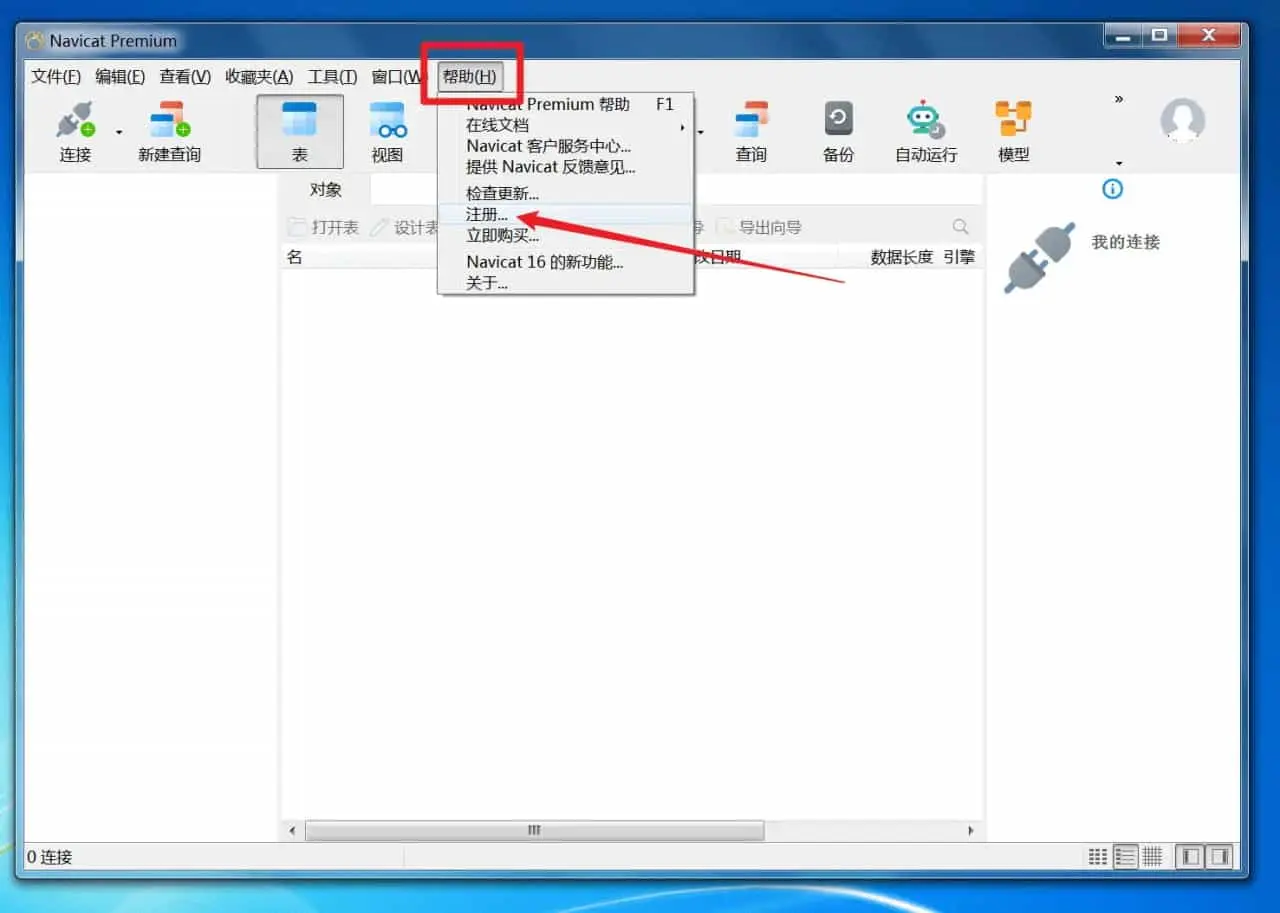 然后打开Navicat Premium 16,点击帮助-->注册