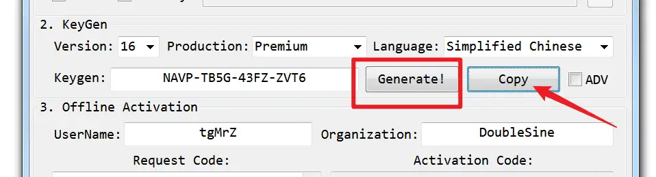 打开注册软件,先点击 Generate! 生成注册码,再点击Copy