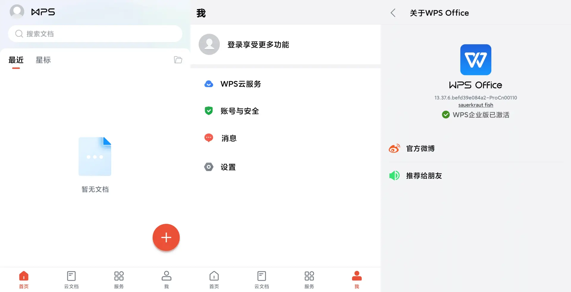 金山WPS安卓版(WPS Office for Android)干净无广告,有登陆及WPS云服务功能,无模板皮肤等付费功能,应用权限少,隐私较严格,免升级无更新提示。WPS Office移动专业版,允许根据用户需求进行功能定制。同时,拥有开放的App接口可以与现有系统对接,利用低成本完成高效办公需求。