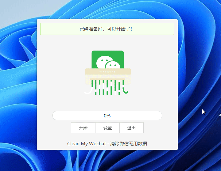 一款开源电脑端微信清理优化工具,无需安装即可使用,双击start.exe文件即可运行。