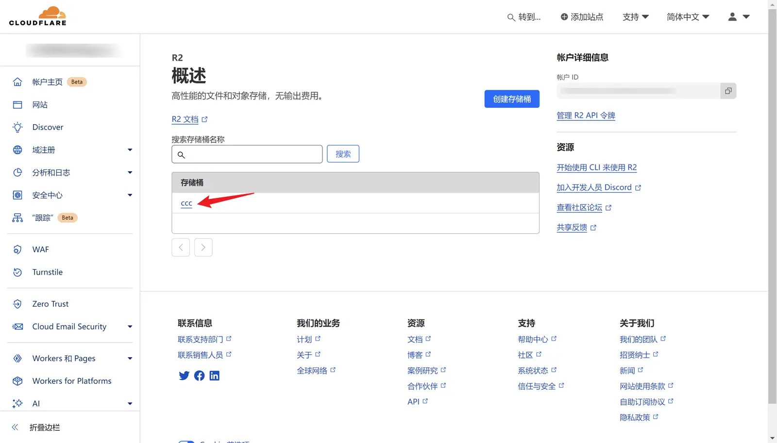 那么考虑的第一种方法就是刚才说到的你在CloudFlare解析的域名,首先点击进入刚才创建的存储桶