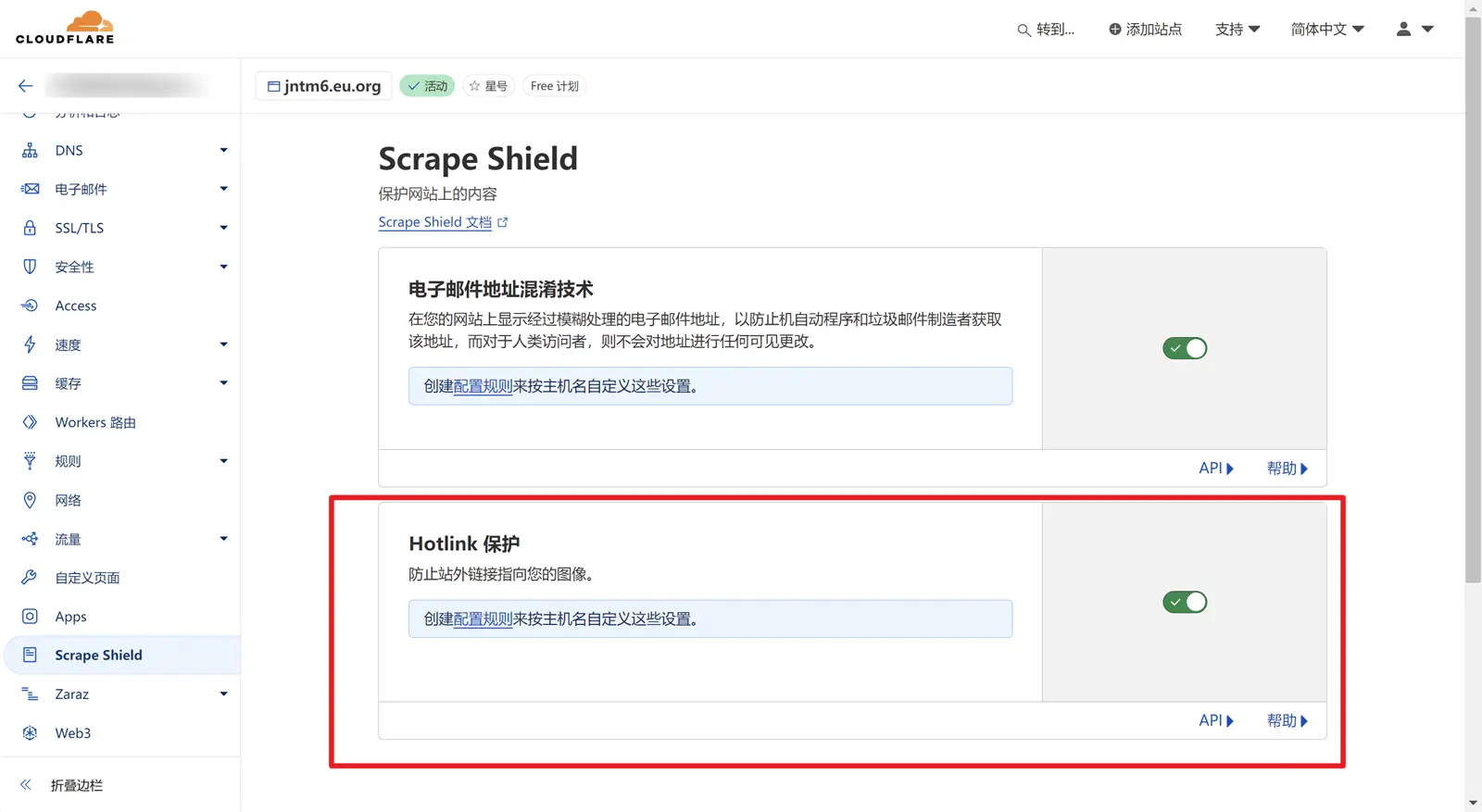 如果说你觉得R2存储桶太麻烦,并且你的图像资源是保存在你自己的服务器上的,又需要保护服务器的图像资源,你可以尝试打开HotLink保护。